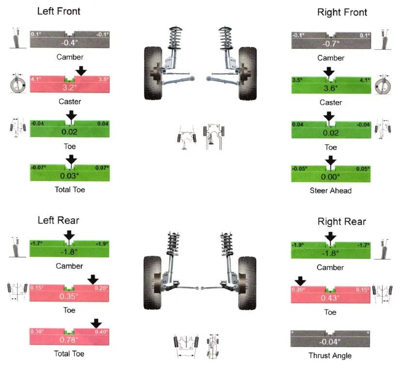 Alignment arms allow you to adjust your wheel positioning by allowing for camber (inward or outward tilt), Caster (forward or backward positioning), and Toe (centering of the wheel when viewed from above) adjustment to desired specs. Alignment plays a pivotal role in tire wear for daily driving as an improper alignment will wear tires prematurely. On the contrary, racers may desire alignment specs that are non OEM to maximize grip or rotation. Making sure your arms are adjustable and the bushings are still stiff will help keep your alignment locked wherever you want it.